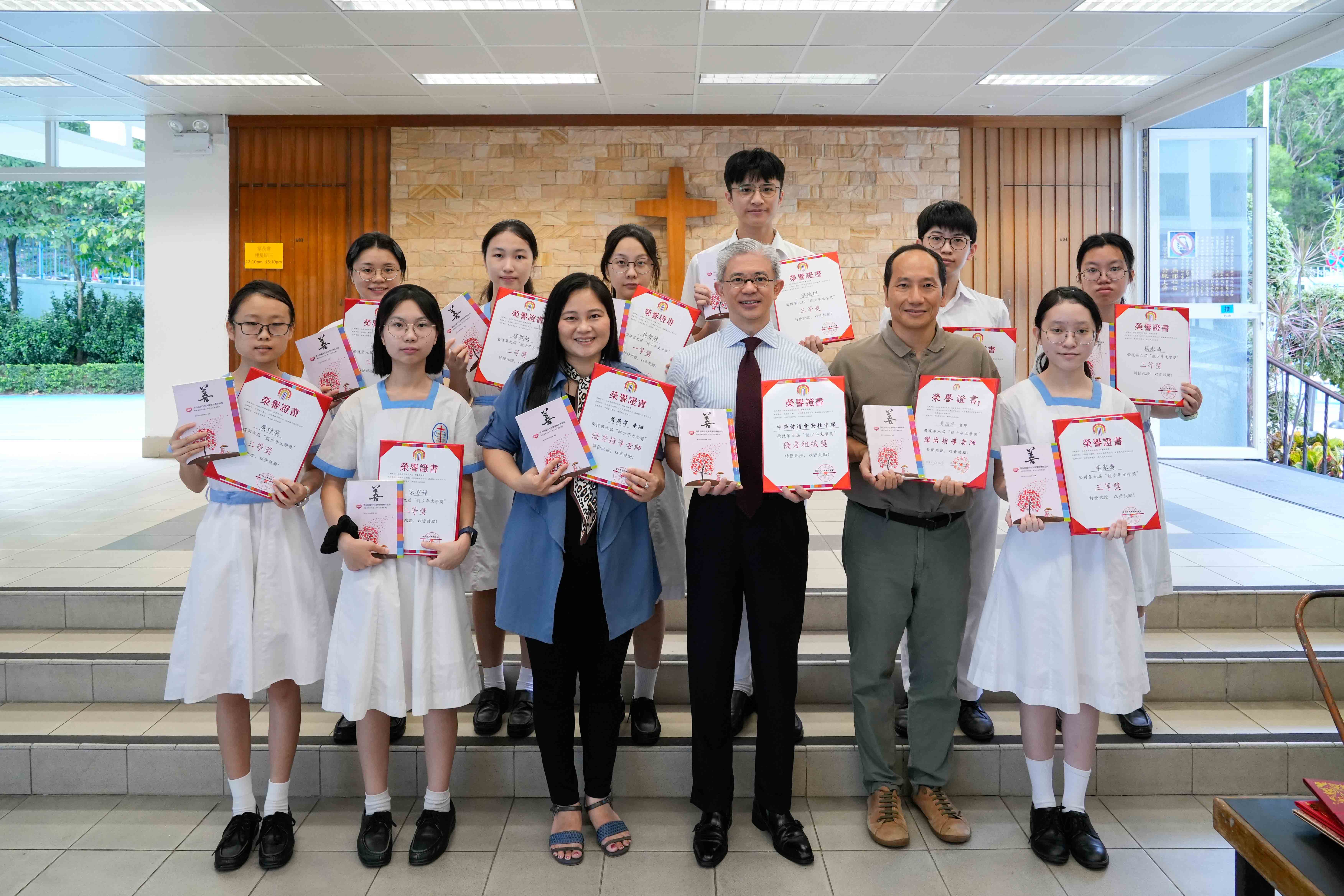 中華傳道會安柱中學同學參與「第九屆龍少年文學獎」(中國、台灣、香港、澳門四地聯賽),於22731篇參賽作品中脫穎而出,囊括九項佳績,九位同學的得獎作品皆入選《龍少年文學獎‧善》(全國總計68篇得獎作品入選),出版繁、簡體字兩種版本,全國發行。