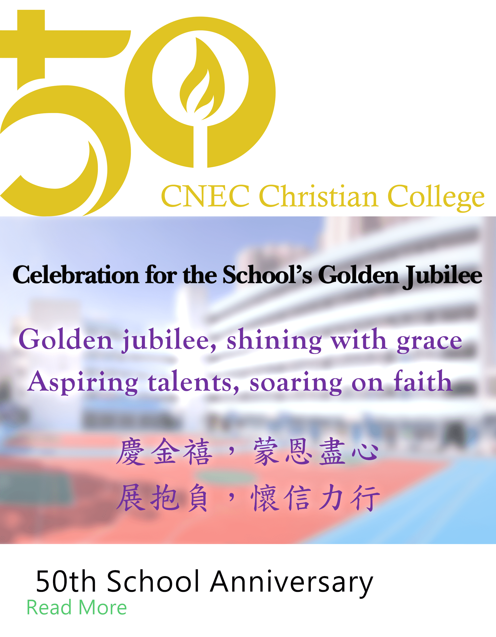 Celebration for the School’s Golden Jubilee Walkathon 步行籌款 20 Oct 2023 Thanksgiving Worship 感恩崇拜 25 Nov 2023 School Open Day